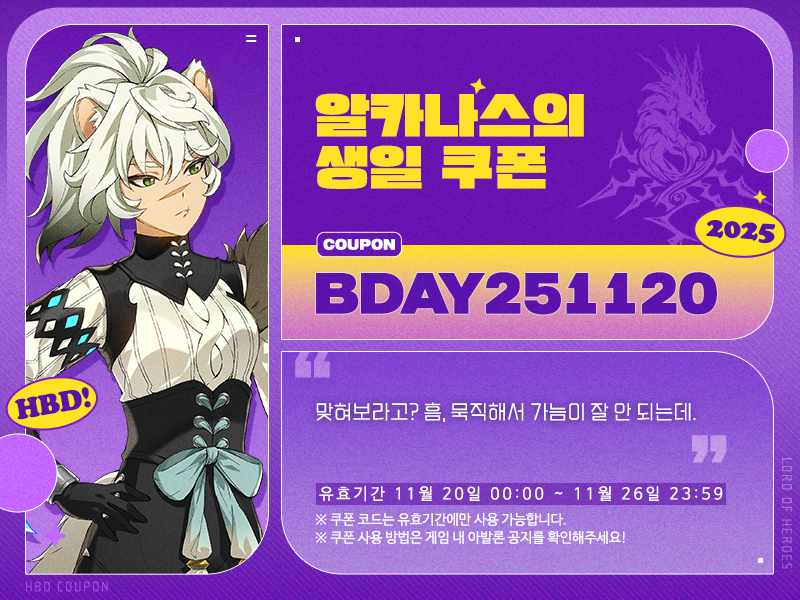 로드, 11월 20일은 알카나스의 생일입니다!