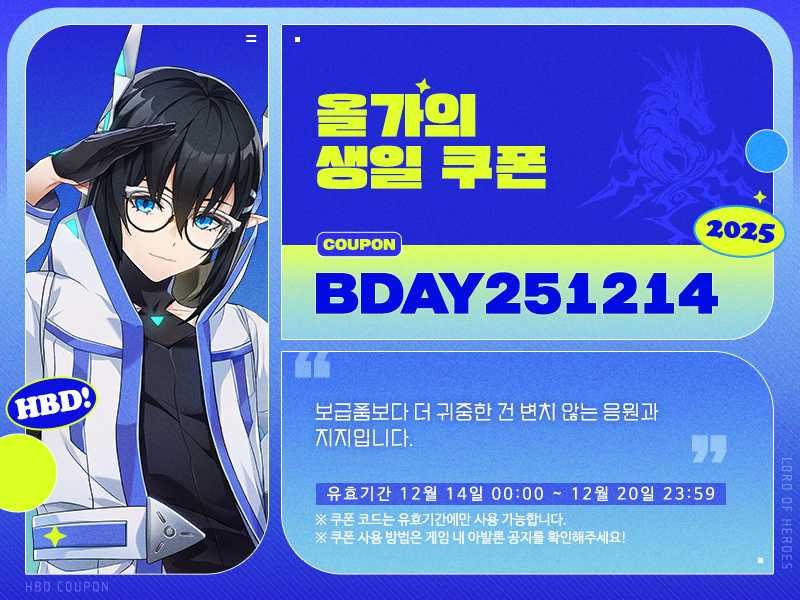 - 기간 : 12월 14일(일) 00:00 ~ 12월 20일(토) 23:59 (UTC+9)