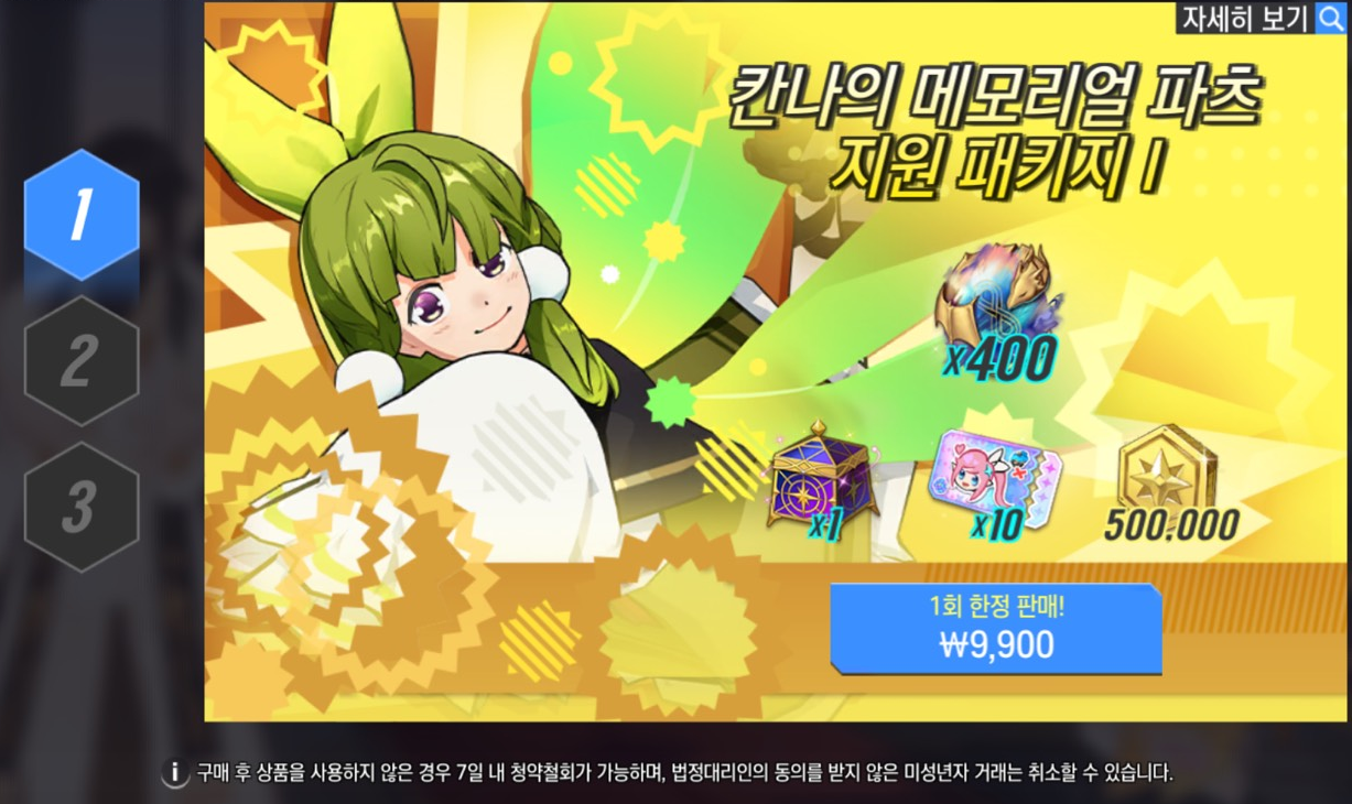 ※ 칸나의 메모리얼 파츠 지원 패키지 안내 표에 오류가 있어 수정되었습니다.(1/22 17:28)