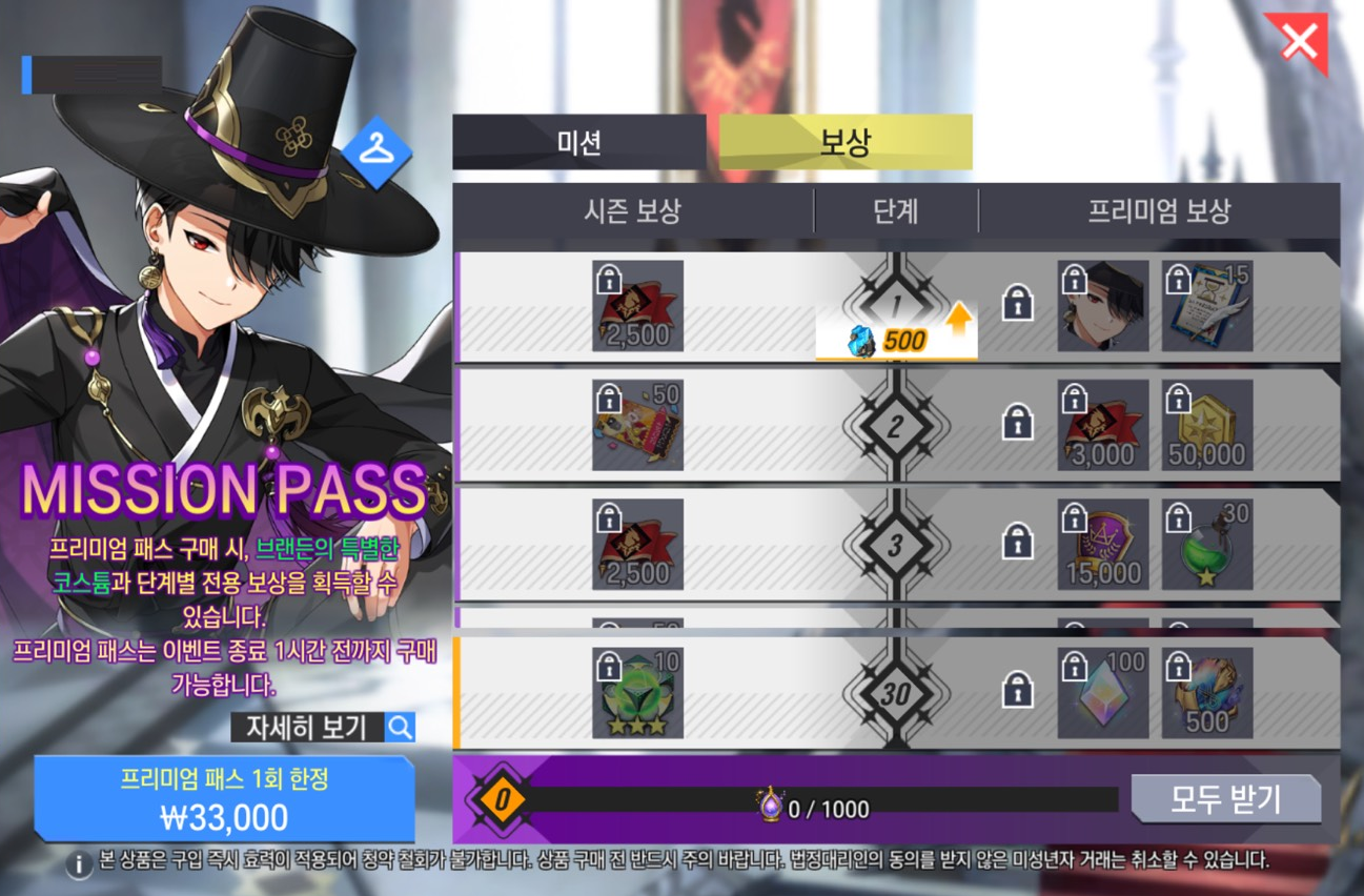 ※ 프리미엄 패스는 미션 패스 종료 1시간 전까지 구매 가능합니다.