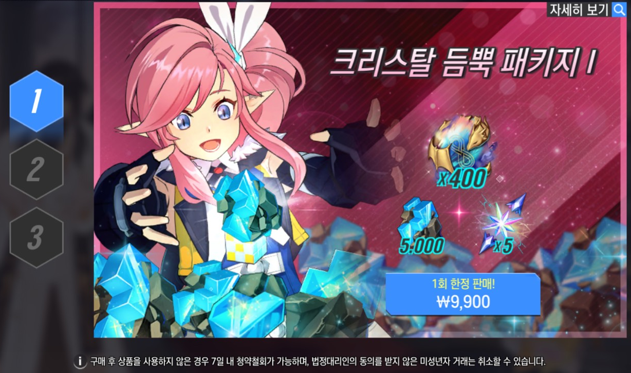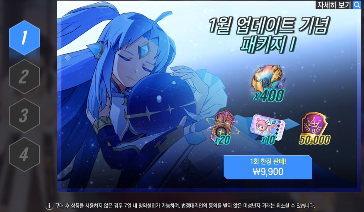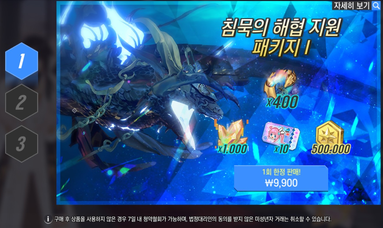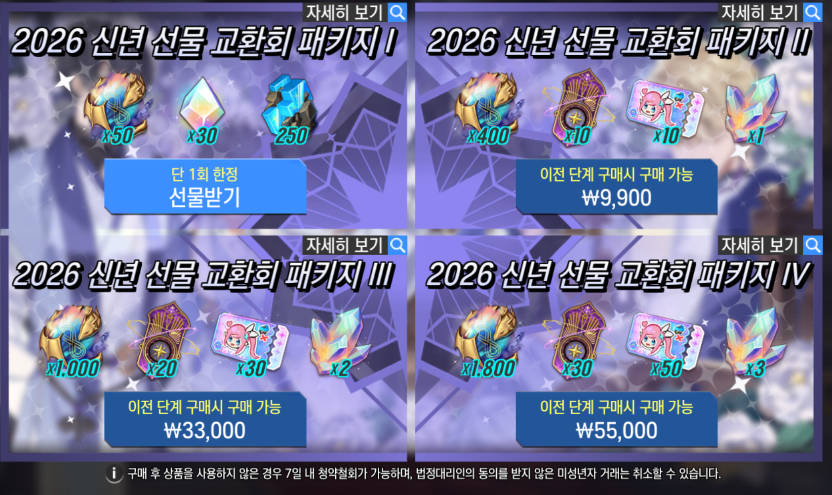※ 특별 선물 패키지는 총 3단계로 이루어져 있으며, 이전 단계 패키지를 구매하면 다음 단계 패키지가 노출됩니다. (예 : 2단계 구매 → 3단계 구매 가능)