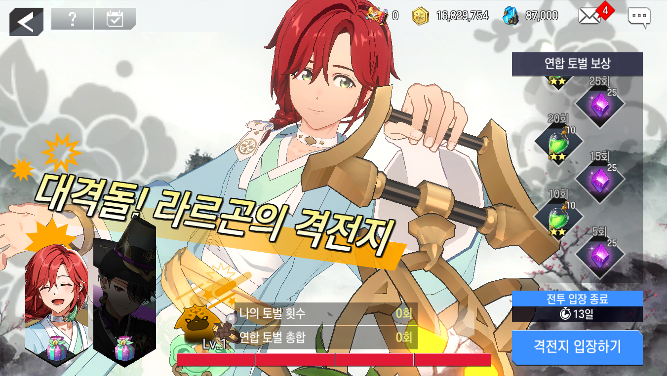- 이벤트 기간 동안 [대격돌 아리랑!] 내 격전지를 연합원들과 토벌할 수 있습니다.