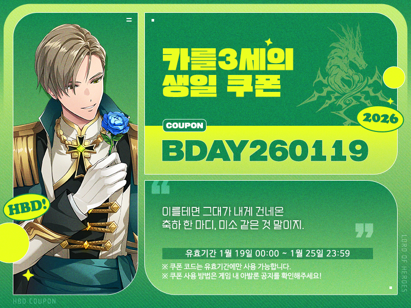 - 기간 : 1월 19일(월) 00:00 ~ 1월 20일(화) 23:59 (UTC+9)