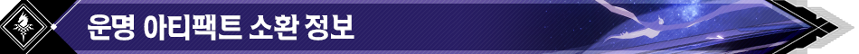 ※ 운명 소환에서 획득 가능한 영웅 및 아티팩트는 다른 운명 소환에서도 소환이 재진행될 수 있습니다.