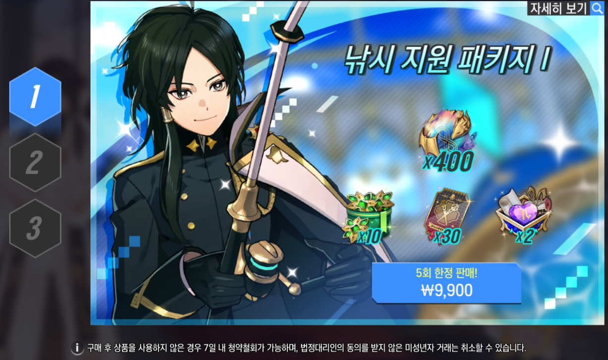 ※ 특별 선물 패키지는 총 3단계로 이루어져 있으며, 이전 단계 패키지를 구매하면 다음 단계 패키지가 노출됩니다. (예 : 2단계 구매 → 3단계 구매 가능)